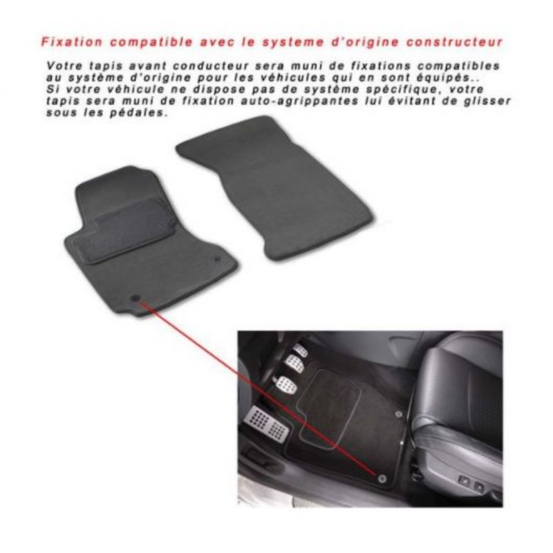 | Technologies | Tapis auto 4 pieces sur mesure, 2 avants et 2 arrieres moquette aiguillete |